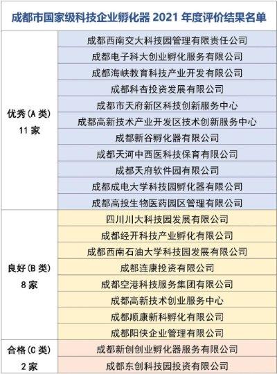 國家級科技企業孵化器2021年度評價結果公布:成都市11家獲評優秀